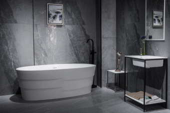 Due to the moldable properties of solid surface, the tubs are available in a wide range of shapes, sizes, and installation options. Choose from freestanding, drop in, undermount, alcove, and even corner tubs in every conceivable shape: classic oval or rectangular tubs, sculpted hourglass and slipper silhouettes, or space-conserving round and square tubs, in sizes from the diminutive to the oversized. You can even opt for a solid surface air tub to turn ordinary bath time into extraordinary leisure time.